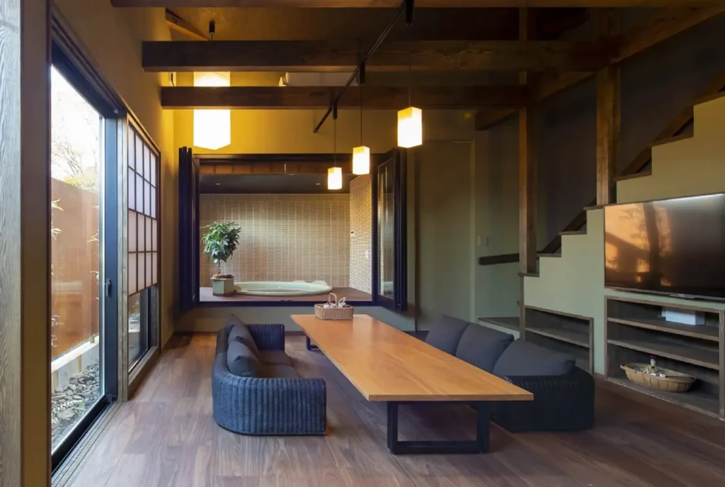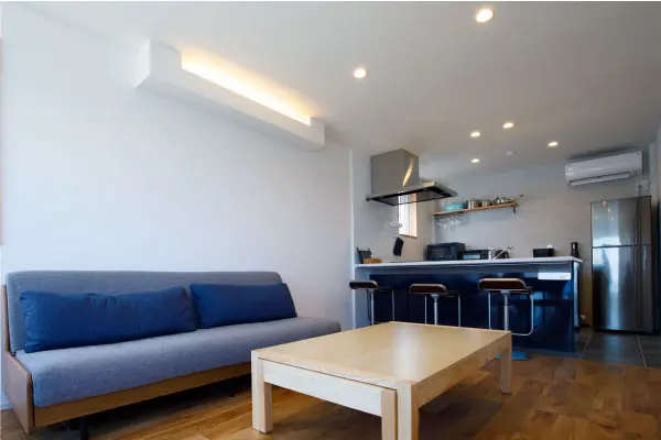 Kanranのコンセプトは「Hygge」。デンマーク語で「心地のいい空間」を意味しますが、まさにHyggeという言葉がぴったりの場所と言えます。施設内はキッチン、リビング、ベッドルームなど生活に欠かすことのできない機器を全て整えた完全一棟貸し。室内は女性のお客様が満足できる十分なアメニティを揃え、急な訪問でも問題なく対応できます。