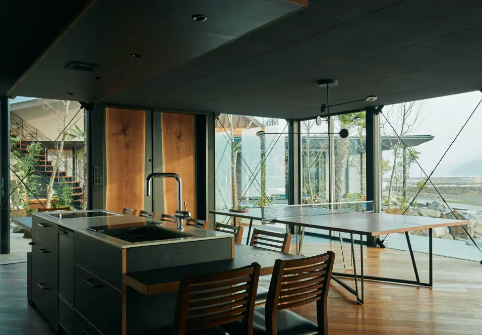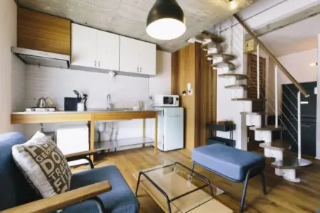 観音寺市にあるスタイリッシュなデザインのゲストハウスです。1階と2階に分かれています。